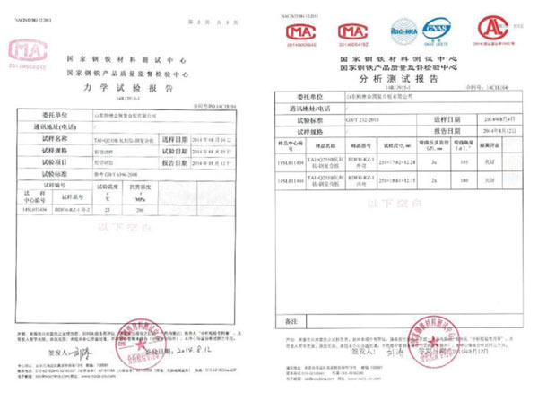 鈦鋼復(fù)合板是將鈦板和碳鋼板通過軋制技術(shù)復(fù)合而成的新型復(fù)合材料。純鈦材以其優(yōu)異的耐腐蝕性能而被廣泛用于各種化學(xué)反應(yīng)器、熱交換器、電廠煙囪等,但成本過高。鈦鋼復(fù)合板不僅具有鈦板的耐腐蝕性和碳鋼板的機(jī)械性能,而且大大降低了成本。目前軋制鈦鋼復(fù)合板的主要缺點(diǎn)是復(fù)合缺陷,主要表現(xiàn)為結(jié)合率不足。而我公司利用團(tuán)隊(duì)優(yōu)勢成功研發(fā)生產(chǎn)軋制鈦鋼復(fù)合板,產(chǎn)品檢驗(yàn)結(jié)果完全滿足GB/T8547-2006《鈦-鋼復(fù)合板》要求,平均剪切強(qiáng)度高于標(biāo)準(zhǔn)要求,界面結(jié)合率達(dá)到100%,并由北京鋼鐵研究總院進(jìn)行第三方檢測,性能指標(biāo)全部合格且優(yōu)異。產(chǎn)品具有交期快、大板幅,可減少焊縫,降低施工成本等優(yōu)勢。先后應(yīng)用于茌平信源電廠、石橫電廠、聊城電廠、黑龍江七臺河電廠、中鋁、陽泉集團(tuán)等單位。我公司也成為國內(nèi)首家完成軋制鈦鋼復(fù)合板批量供貨的廠家。材質(zhì):Q235B+Ta1,Q235B+Ta2;用途:熱交換器、煙囪鋼內(nèi)襯、鋼內(nèi)筒、煙囪防腐改造等。